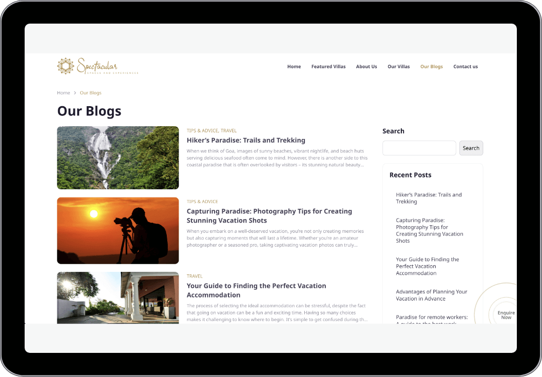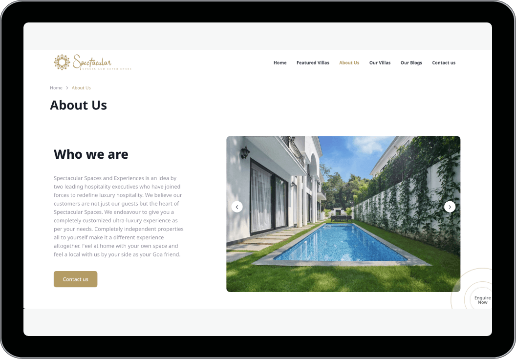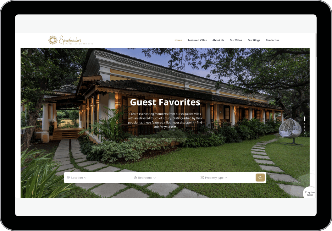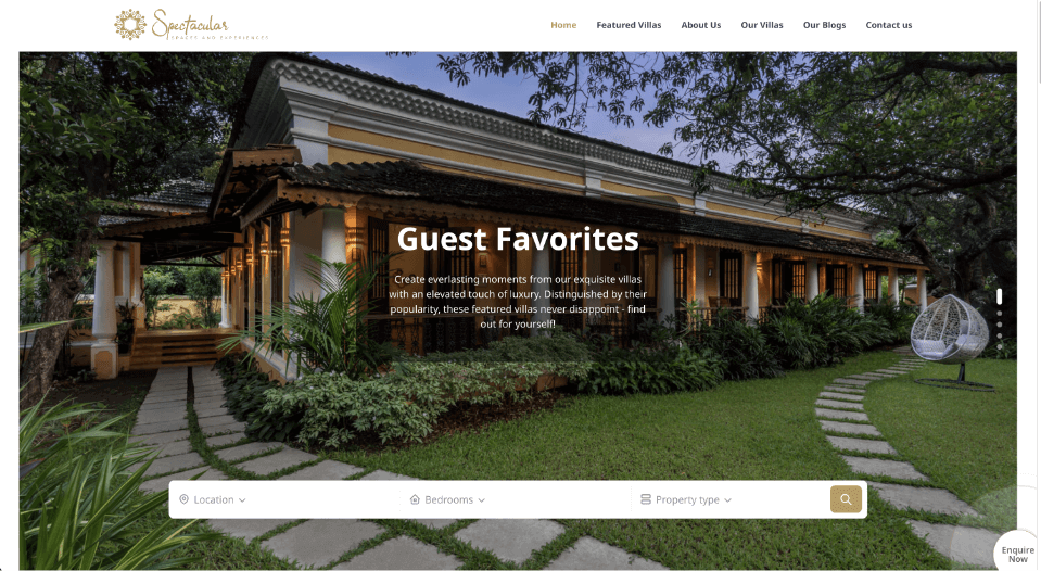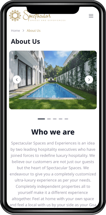 The redesigned website became the digital gateway to Spectacular Spaces & Experiences, attracting discerning travelers and property owners. It significantly increased user engagement and inquiries, establishing the company as a premier provider of luxury villa rentals in Goa.