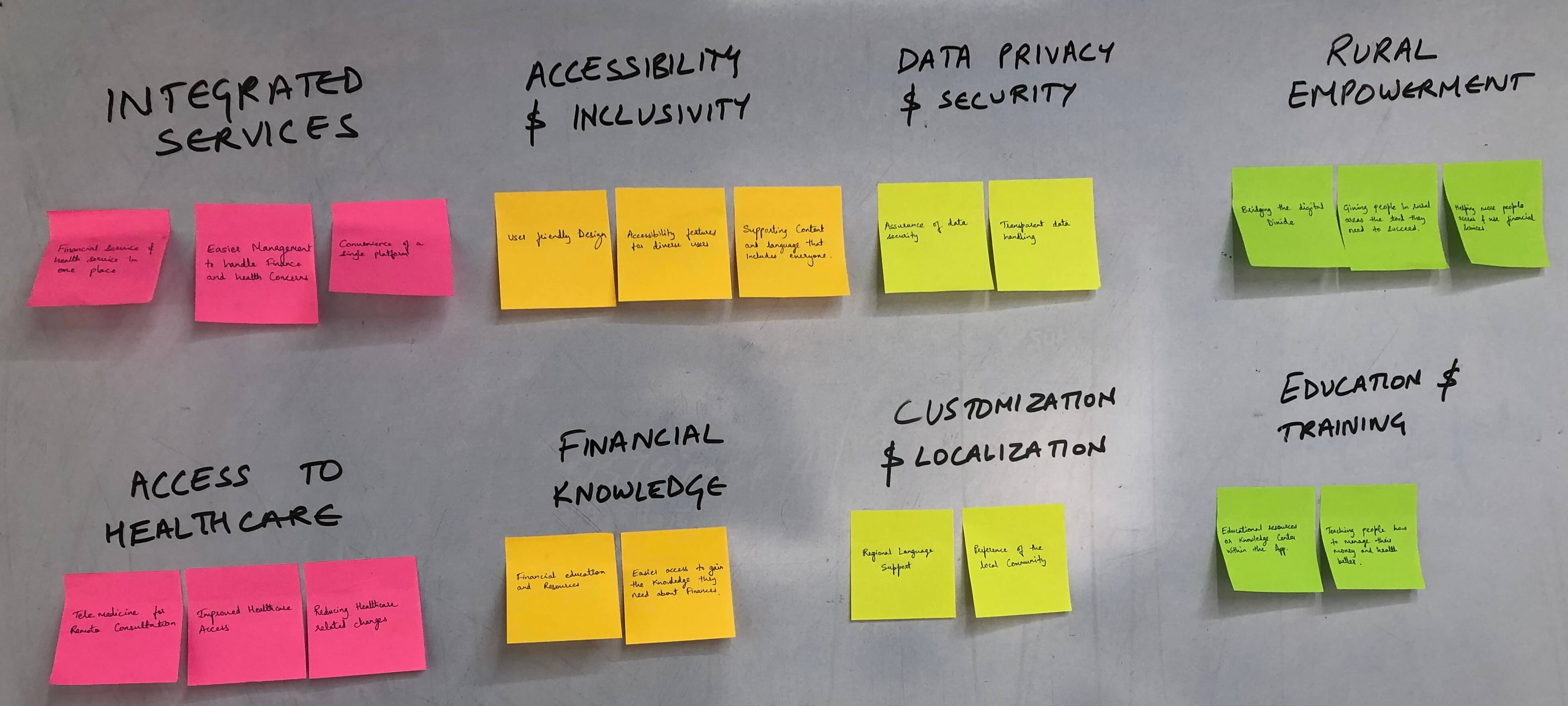 Making an affinity map helped us organize and group all the important things we learned from talking to users.