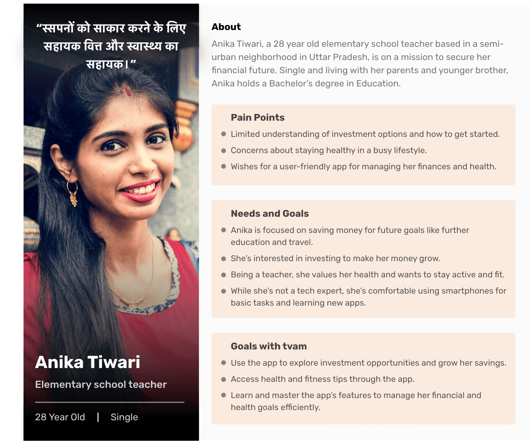 We paid close attention to real users like Deepak and Anika, who shared their challenges with us. Their experiences helped shape tvam.